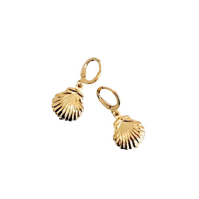 Layer on the coastal vibes with our Cove shell earrings. 18k gold filled hoops with an etched gold scallop shell charm.