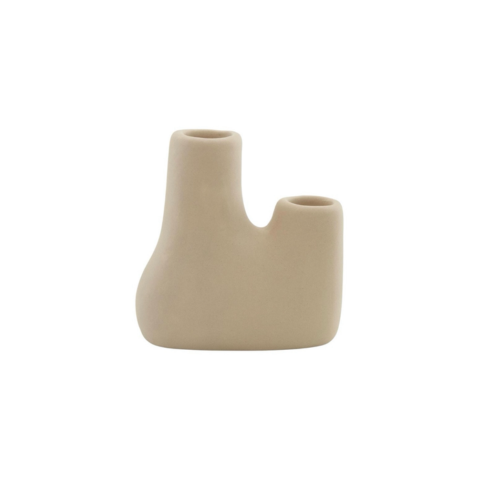 The Lulu candle holder holds two classic taper candles. Soft organic form finished in a matte sand glaze.